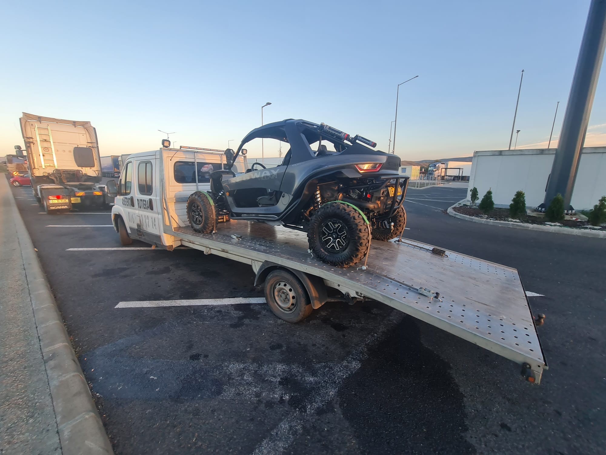 Asigurăm asistență rutieră, tractări auto cât și transport utilaje și Moto/ATV